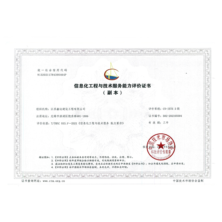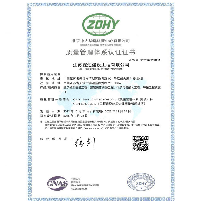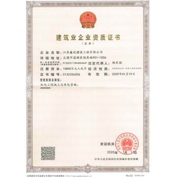 ? 機電工程施工總承包壹級 ? 電子與智能化工程專業(yè)承包壹級 ? 建筑機電安裝工程專業(yè)承包壹級 ? 消防設施工程專業(yè)承包貳級 ? 防水防腐保溫工程專業(yè)承包貳級 ? 建筑裝修裝飾工程專業(yè)承包貳級 |