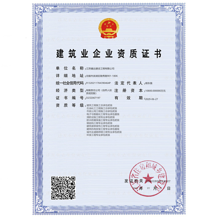 ? 石油化工工程施工總承包貳級 ? 市政公用工程施工總承包貳級 ? 鋼結構工程專業(yè)承包貳級 ? 城市及道路照明工程專業(yè)承包貳級 ? 環(huán)保工程專業(yè)承包貳級 ? 建筑裝飾工程設計專項乙級 |