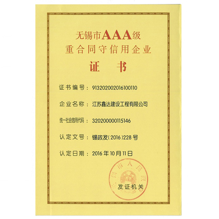 無(wú)錫市AAA級(jí)重合同守信用企業(yè)