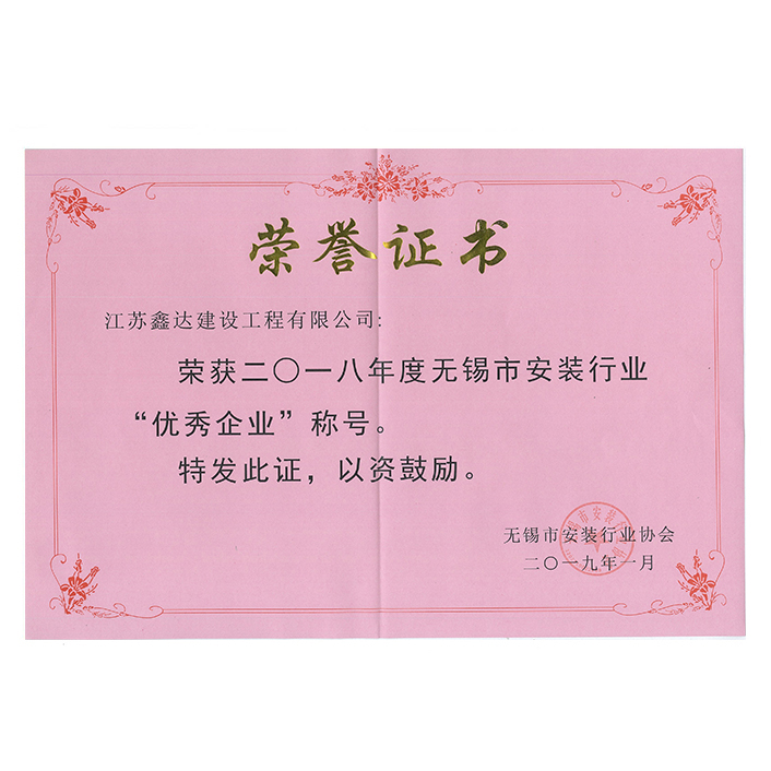 2018年度市安裝行業(yè)優(yōu)秀企業(yè)