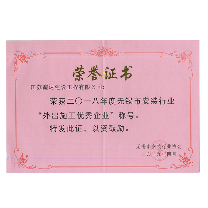 2018年度市安裝行業(yè)外出施工優(yōu)秀企業(yè)