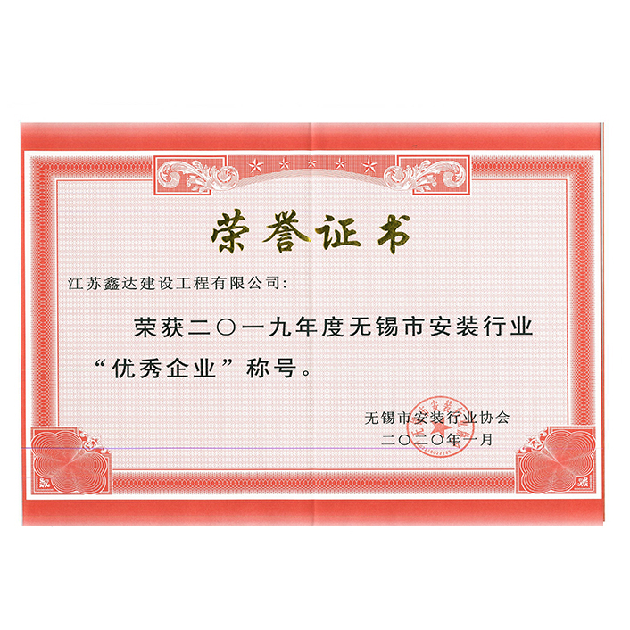 2019年度市安裝行業(yè)優(yōu)秀企業(yè)