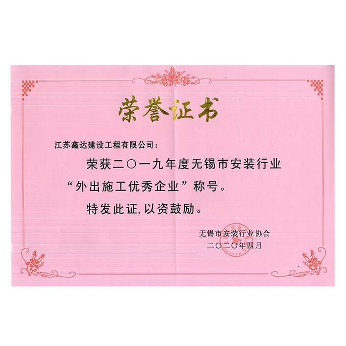 2019年度市安裝行業(yè)外出施工優(yōu)秀企業(yè)