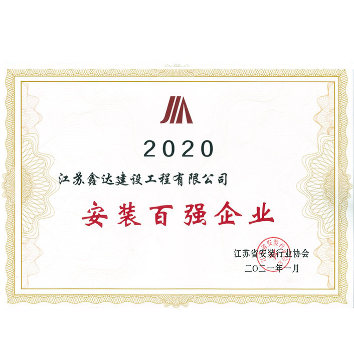 2020年度江蘇省安裝百?gòu)?qiáng)企業(yè)