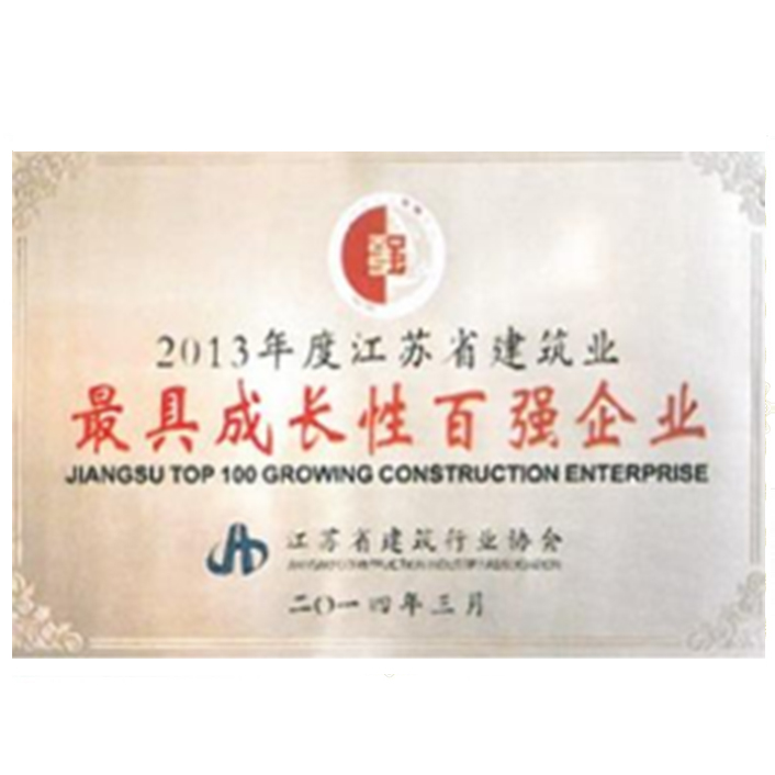 2013年度省建筑業(yè)最具成長(zhǎng)型百?gòu)?qiáng)企業(yè)