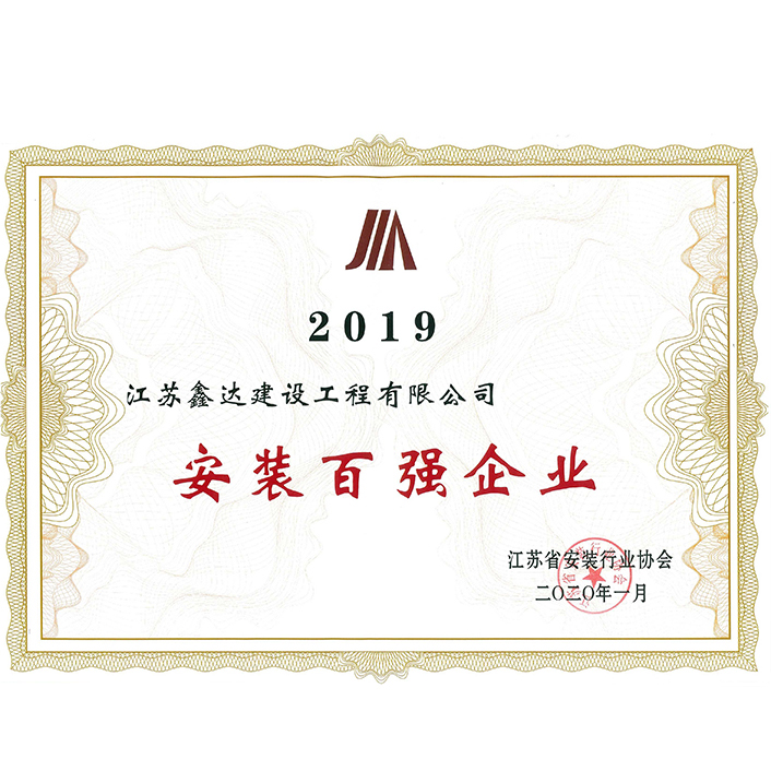 2019年度江蘇省安裝百?gòu)?qiáng)企業(yè)