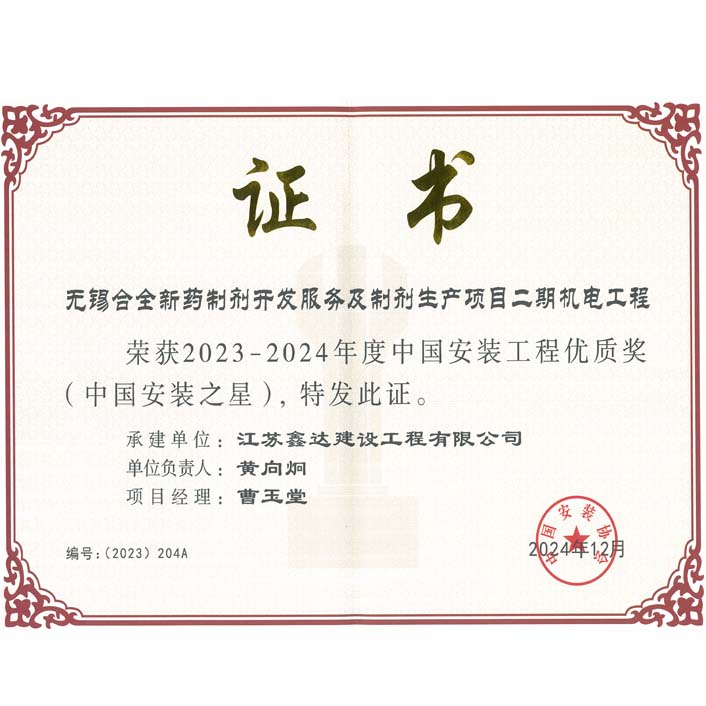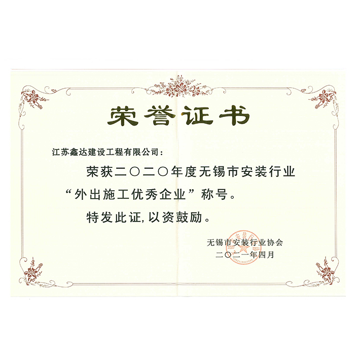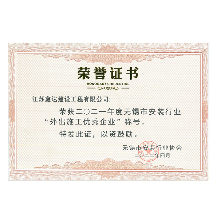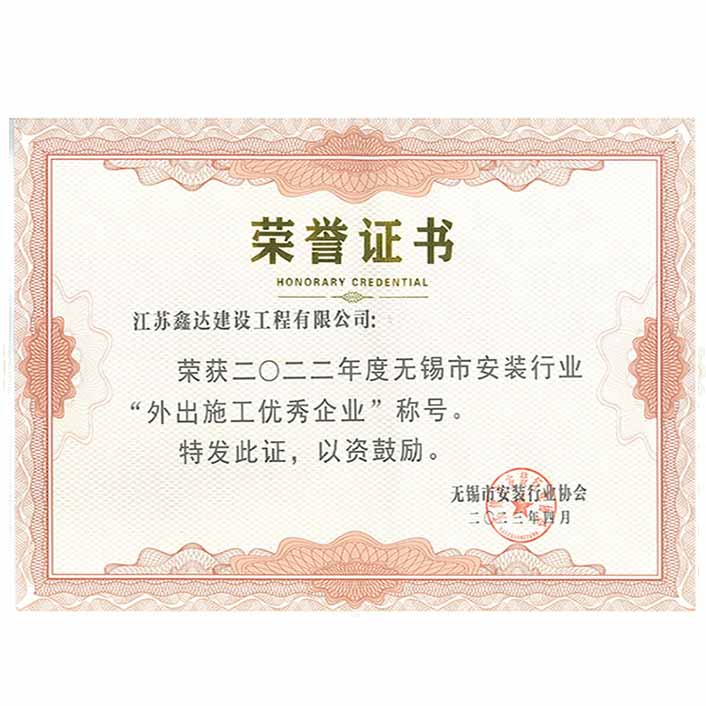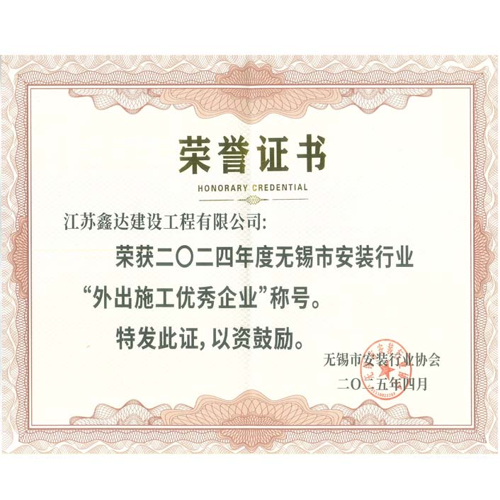 2024年度無(wú)錫市安裝行業(yè)“外出施工優(yōu)秀企業(yè)”