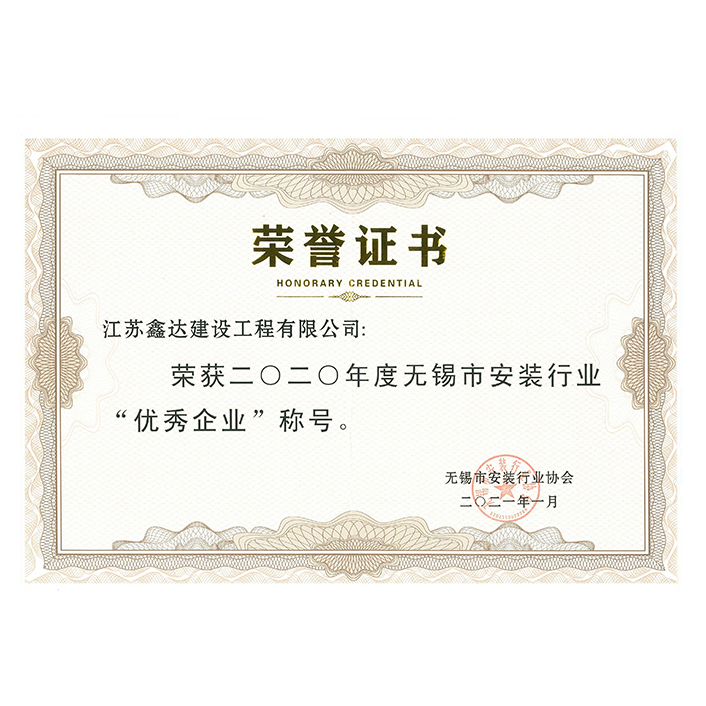 2020年度市安裝行業(yè)優(yōu)秀企業(yè)