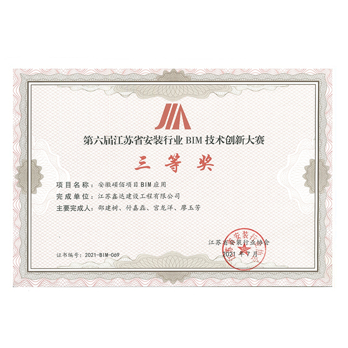 第六屆省安裝行業(yè)BIM創(chuàng)新大賽三等獎(jiǎng)