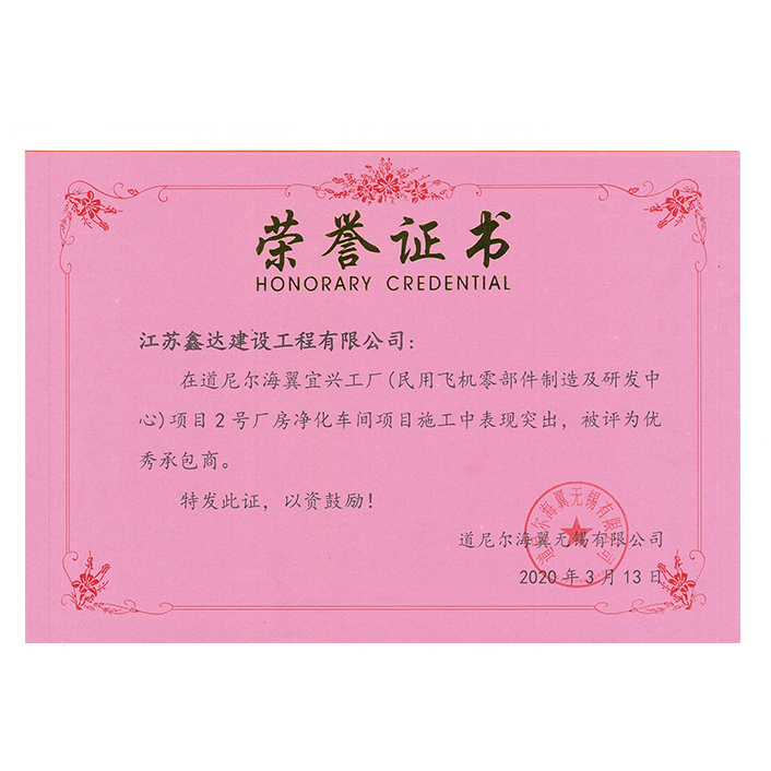 2020年優(yōu)秀承包商(道尼爾海翼工廠)