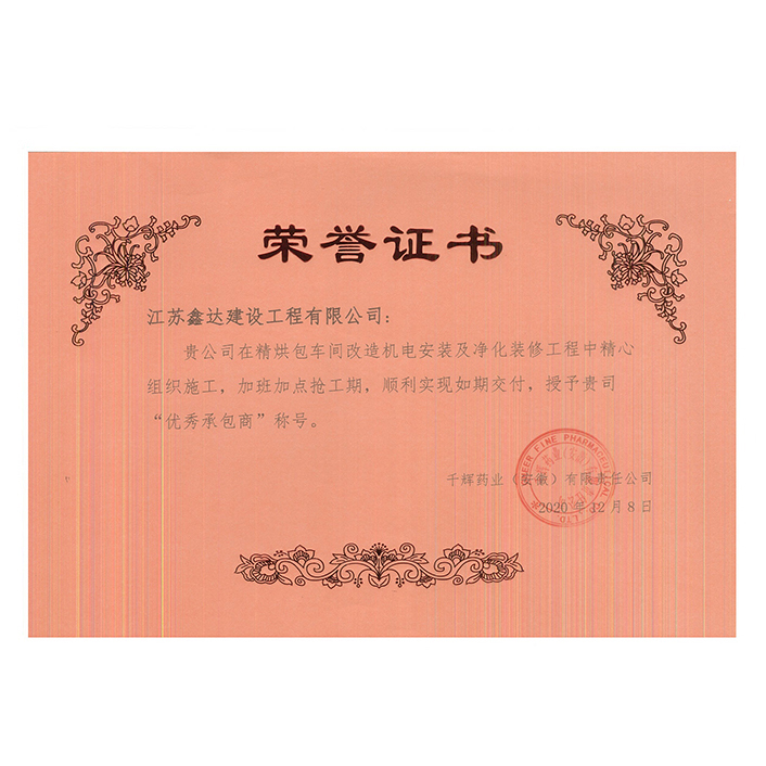 2020年優(yōu)秀分包商(千輝藥業(yè))