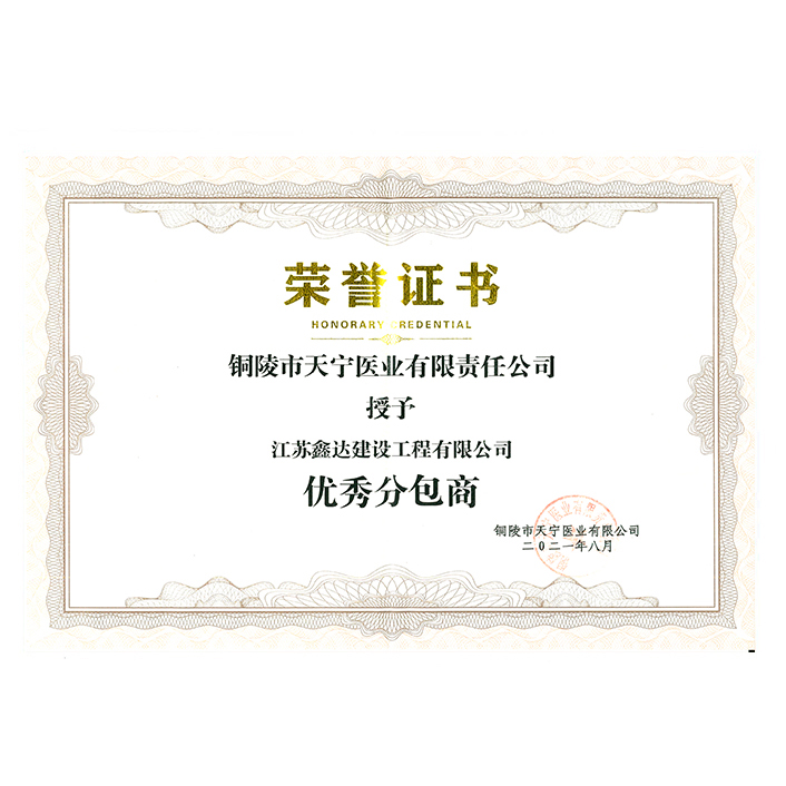 2021年優(yōu)秀分包商(天寧醫(yī)業(yè))