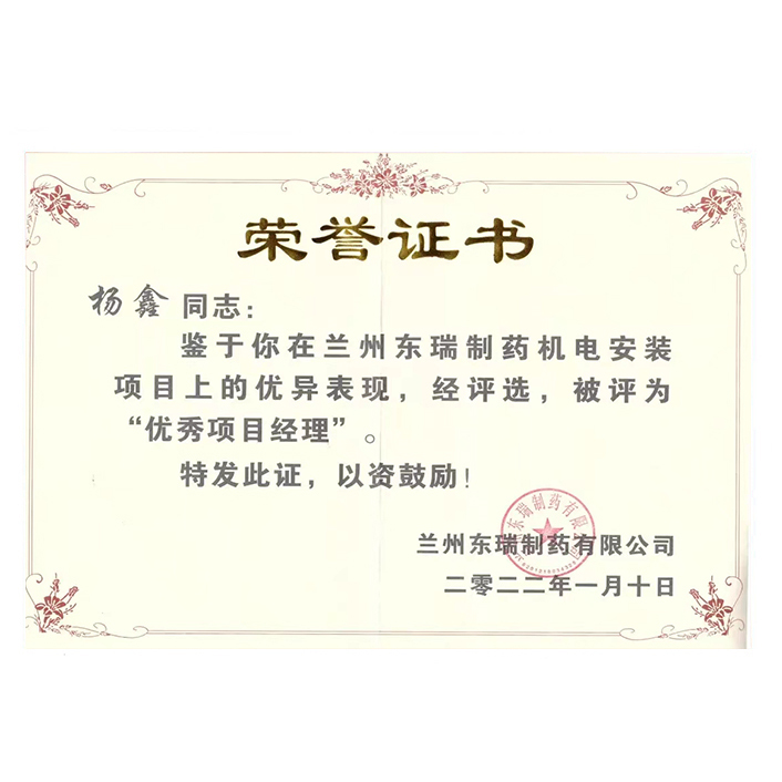 2021年蘭州東瑞制藥優(yōu)秀項(xiàng)目經(jīng)理(楊鑫)