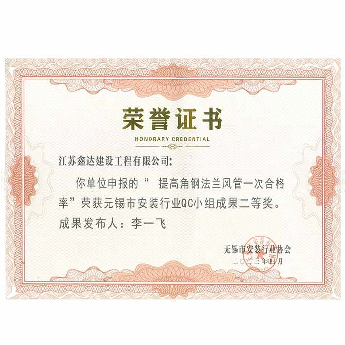 無(wú)錫市安裝行業(yè)QC小組成果二等獎(jiǎng)(李一飛)