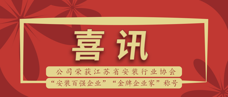 喜訊 | 公司榮獲江蘇省安裝行業(yè)“安裝百強(qiáng)企業(yè)”及“金牌企業(yè)家”稱號(hào)