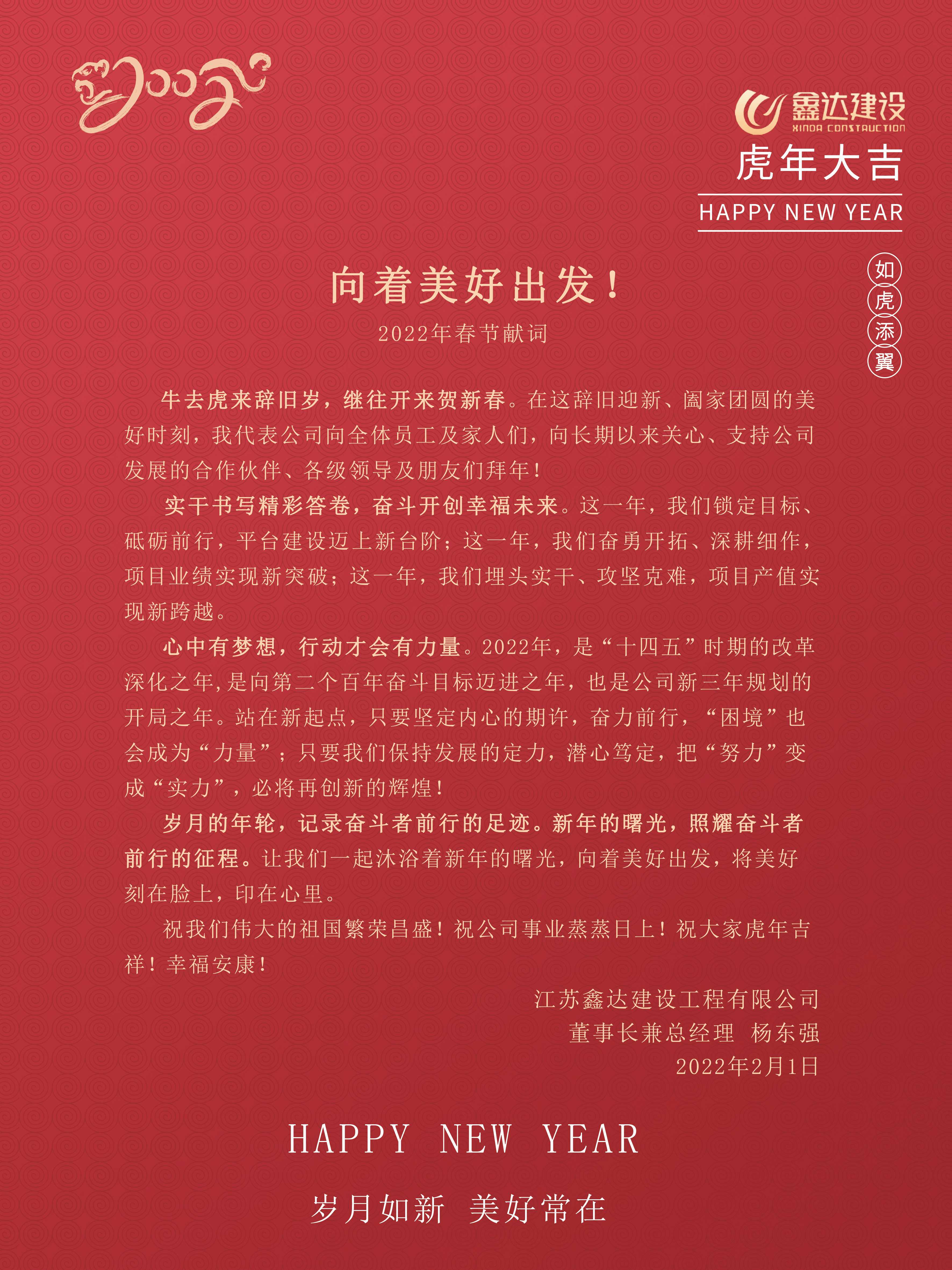 春節(jié)賀詞 | 2022年新春賀詞:向著美好出發(fā)!